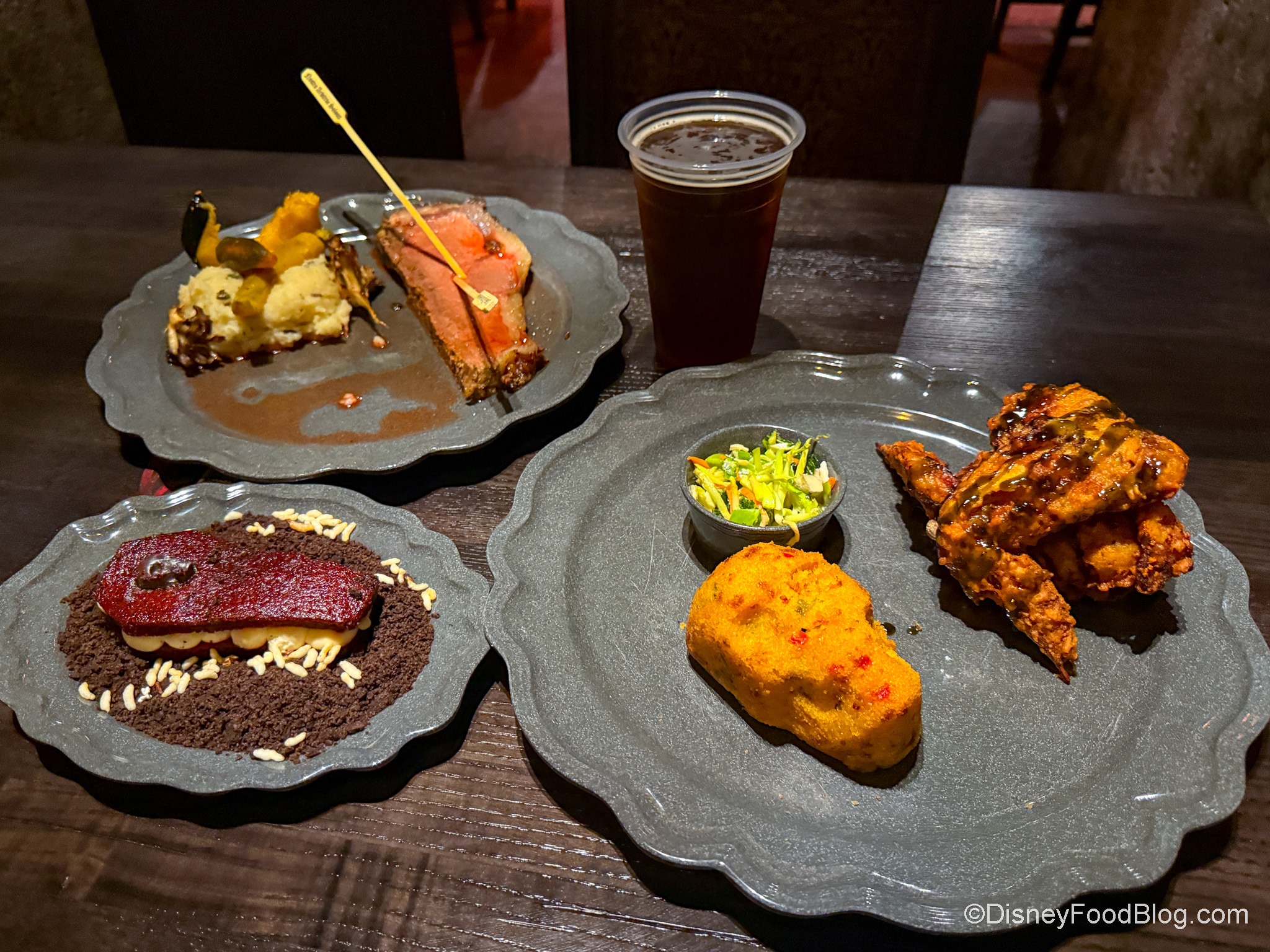 Das Stakehaus is a Quick Service restaurant themed around an “old inn and dining hall built over the ruins of ancient catacombs.” According to the area’s lore, the town of Darkmoor features a coven of vampires living beneath it, and these are the same vampires who operate Das Stakehaus within the land.