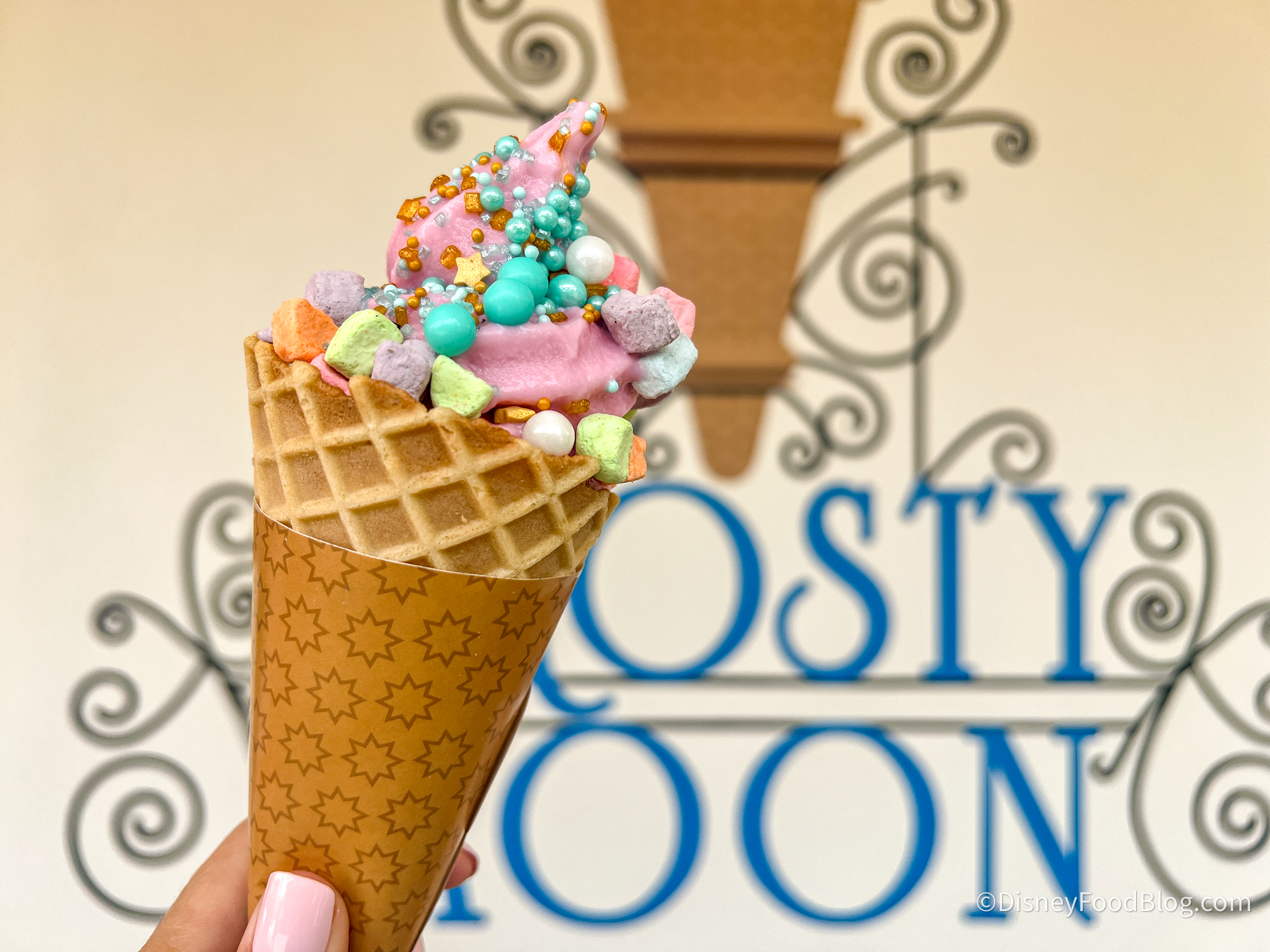 That said, these aren’t your everyday, run-of-the-mill ice cream cones and cups that Frosty Moon is serving up. Your choice of soft-serve comes with two fun toppings, with options like Strawberry cheesecake pieces, Mini marshmallows, Celestial sprinkles, and more!