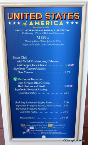 Here we are back in the good old USA! But you won’t get burgers and hot dogs at this Epcot Food and Wine Festival booth. Instead, you’ll be treated to some of the finest produce and ingredients the United States have to offer.
