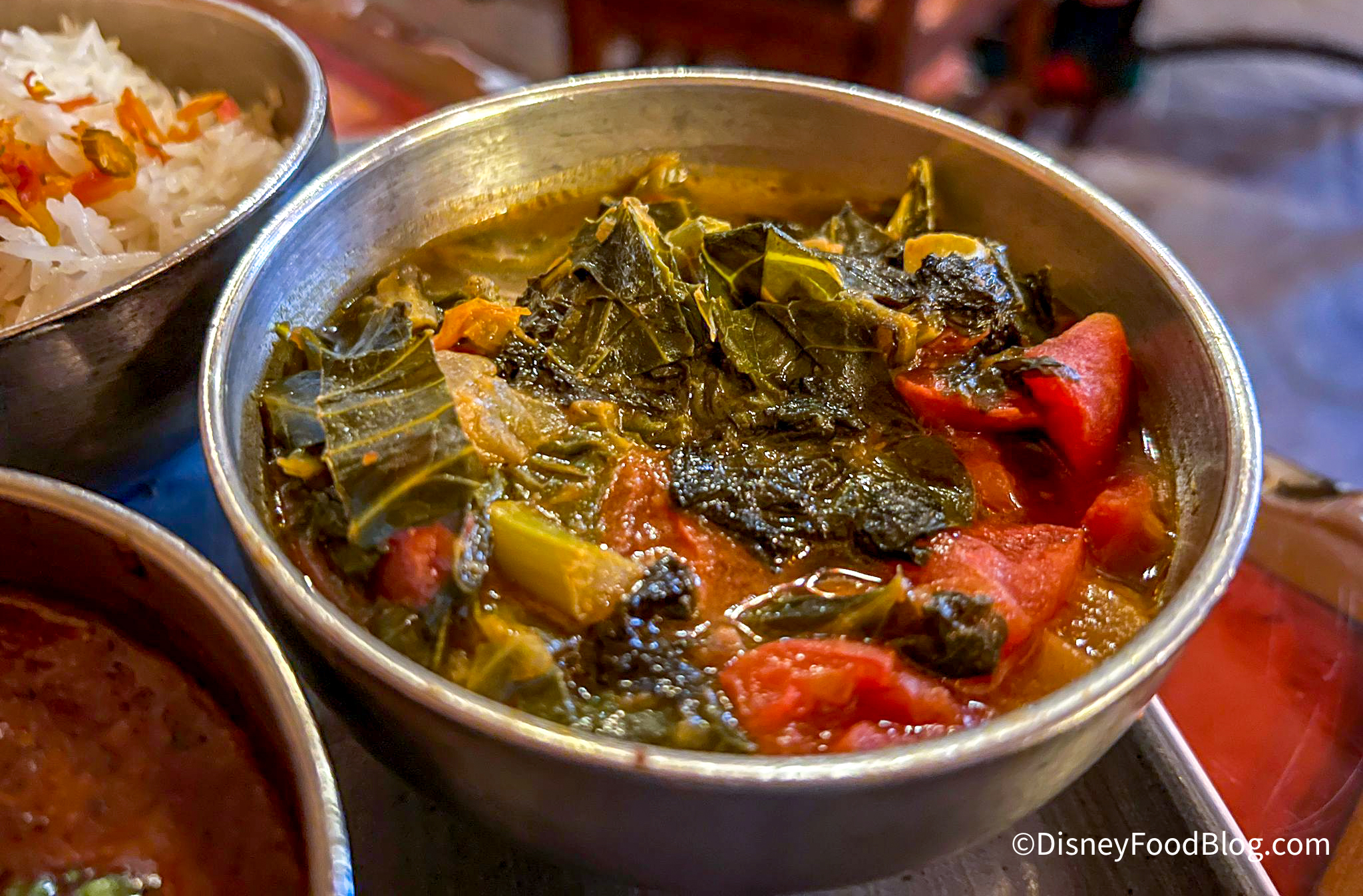 The Potjie Inspired option at Sanaa gives guests the opportunity to choose two dishes, accompanied by Basmati rice. The Harvest options — Rajma Masala, Chickpea Wat, Sukuma Wiki, or Lentil Daal — are all plant-based.