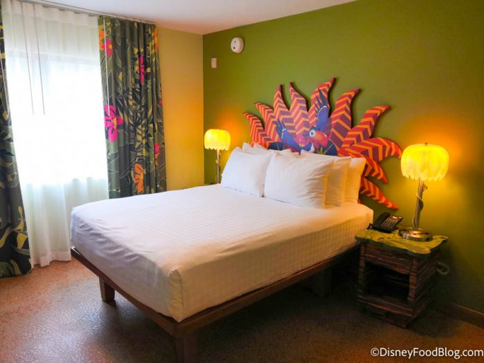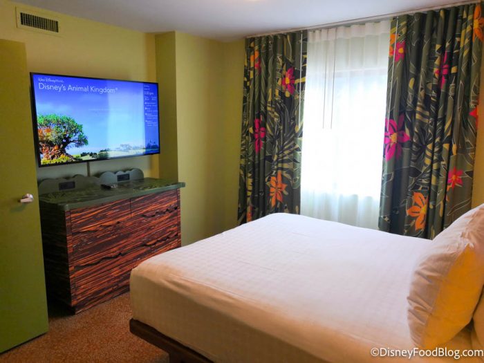 The bedroom with the Queen bed is a good indicator as to how the interior rooms are as colorful and well-themed as the Resort’s exterior!