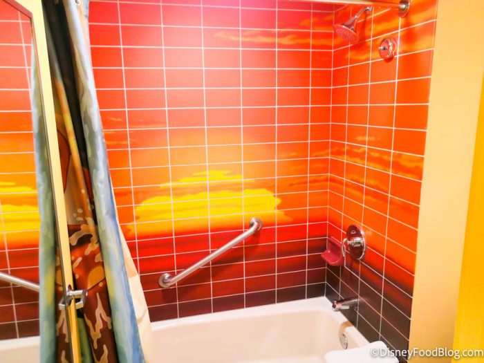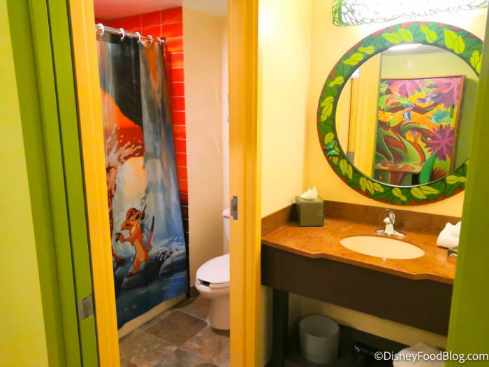 A second bathroom echoes the same savanna sunrise theme as the Master bathroom in the Lion King suites.