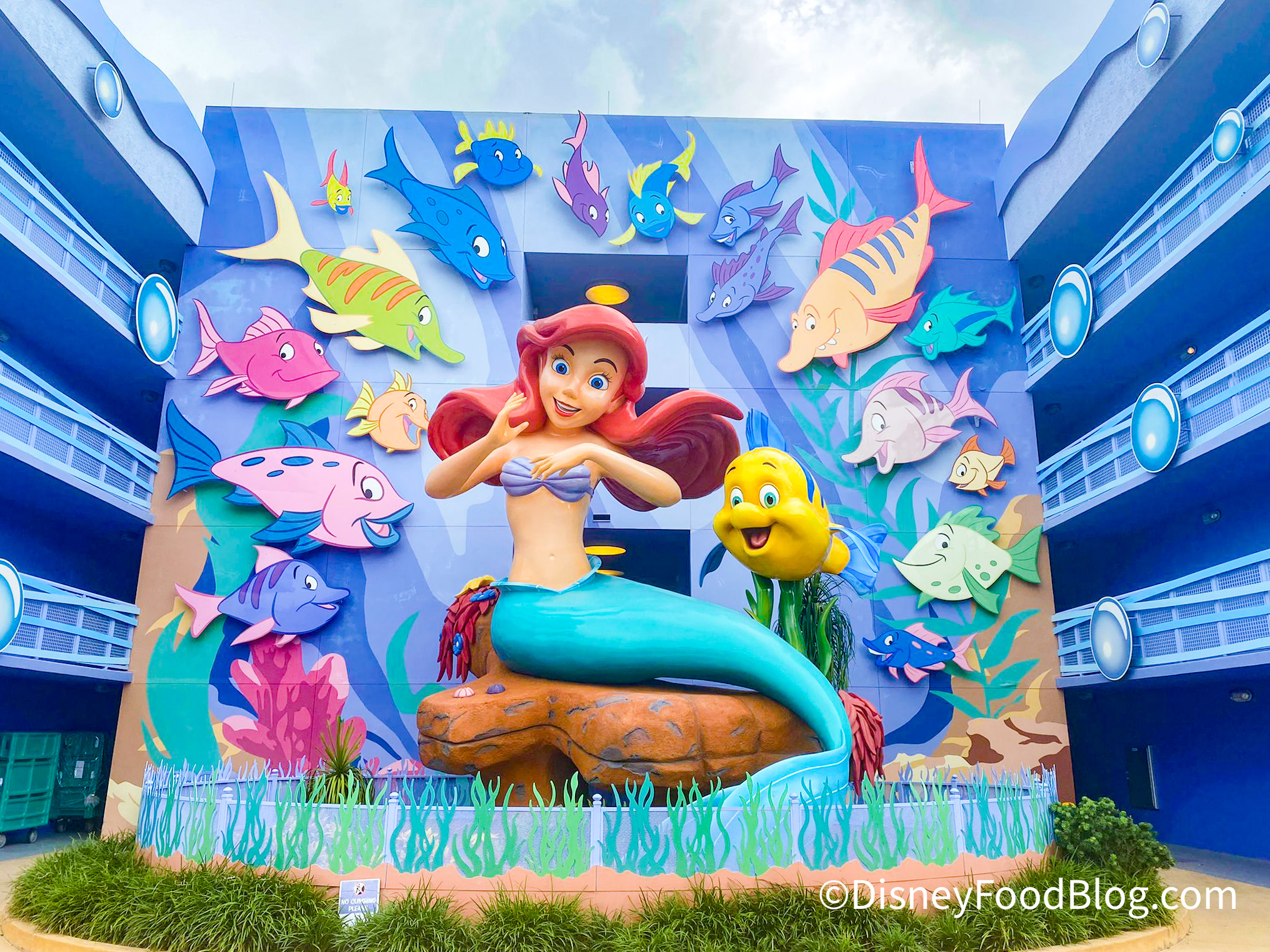 Guests also have access to two more pools. The Cars section hosts the Cozy Cone Pool (complete with clever Cone Cabanas) and The Little Mermaid section hosts the Flippin’ Fins Pool.