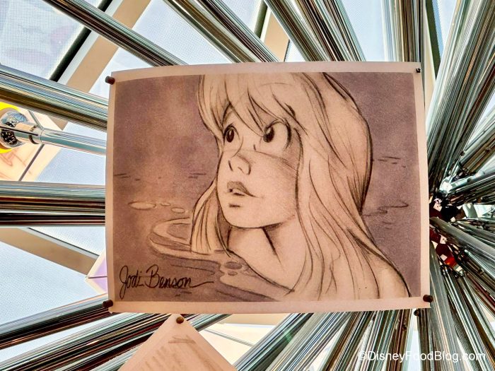 FUN FACT: When the resort first opened, Pat Carroll, the voice of Ursula, and Jodi Benson, the voice of Ariel, from Disney’s The Little Mermaid signed some artwork that you can see within that chandelier!