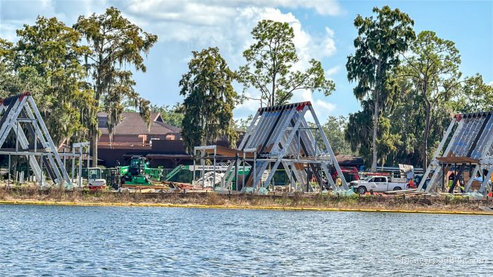 The photo above comes from @bioreconstruct on X/Twitter, and you can see the positioning of Lakeshore Lodge in relation to Disney’s Wilderness Lodge (on the left), Disney’s Contemporary Resort (on the right), and Disney’s Grand Floridian Resort & Spa (at the top of the picture).