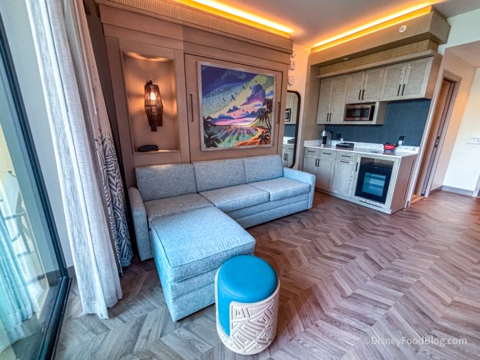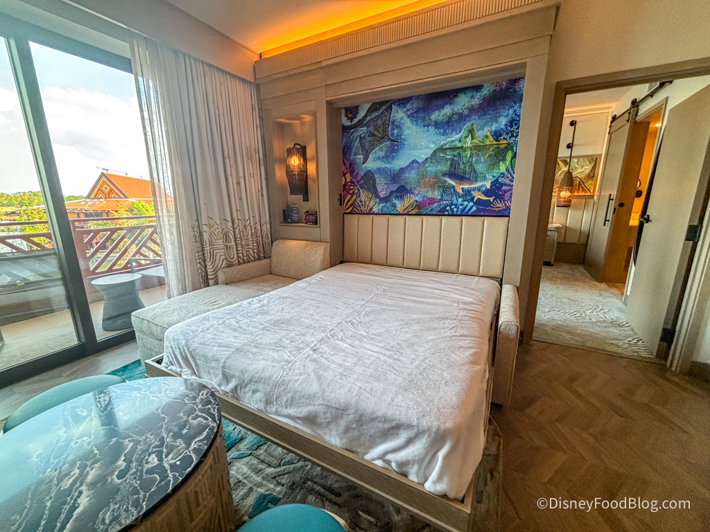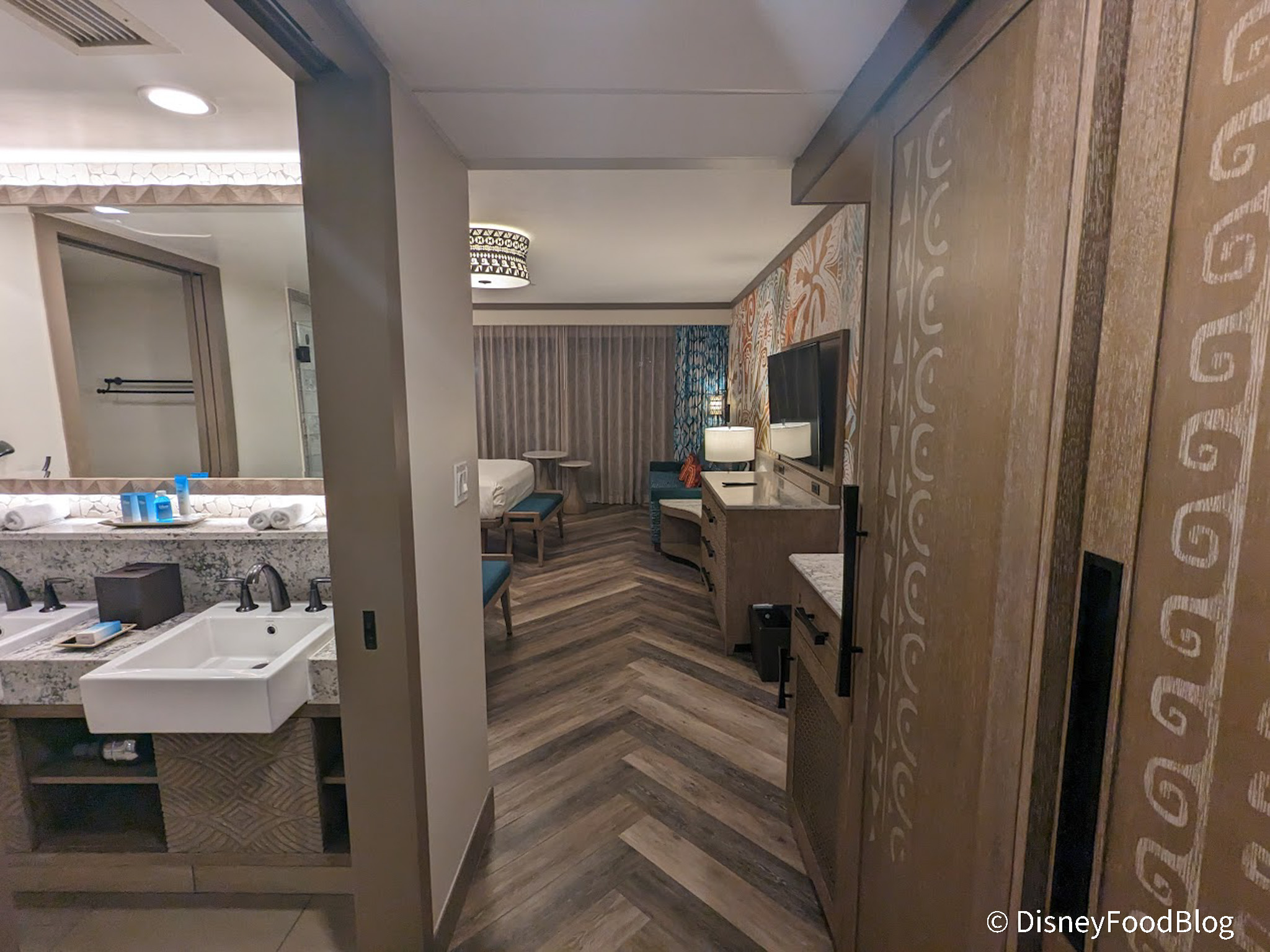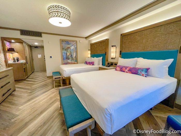 In July 2021, guest rooms reopened following a major refurbishment to debut Moana-inspired decor, combining a Polynesian theme with modern design. The fun Moana details actually start before you set foot inside the room!