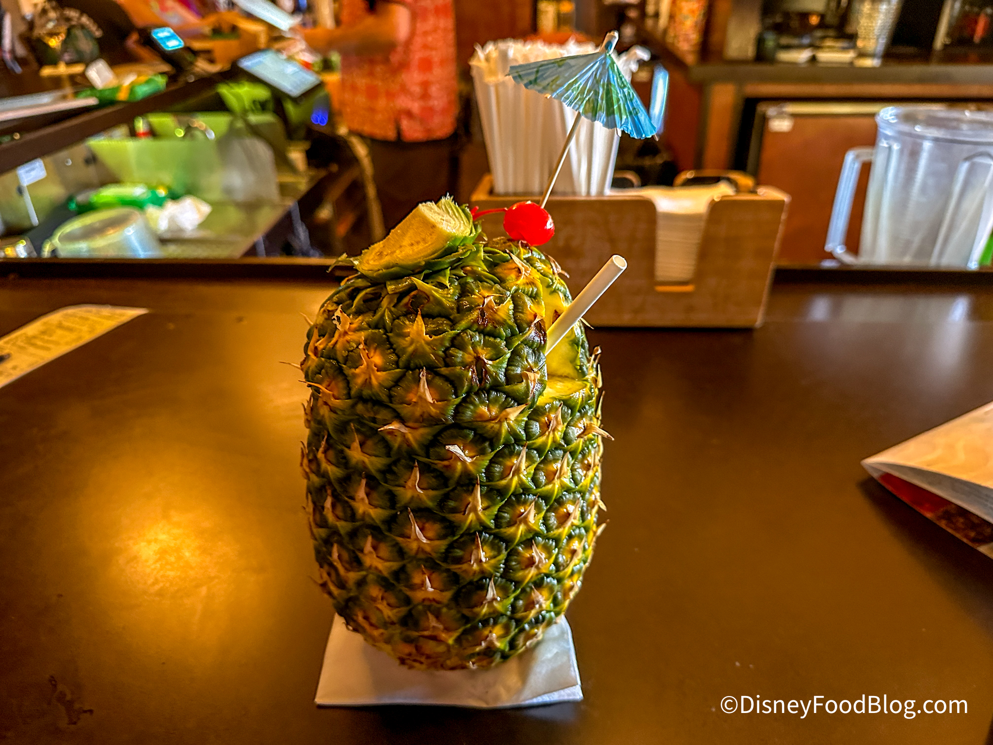 Tambu Lounge is located in the waiting area for ‘Ohana. The bartenders are friendly, and sipping a signature Lapu Lapu (a rum drink served in a fresh pineapple) is always memorable!