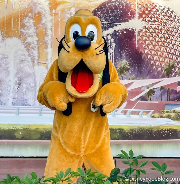 See Disney Pals (like Pluto!) near EPCOT’s Main Entrance, ready to wish you a GREAT DAY in EPCOT!