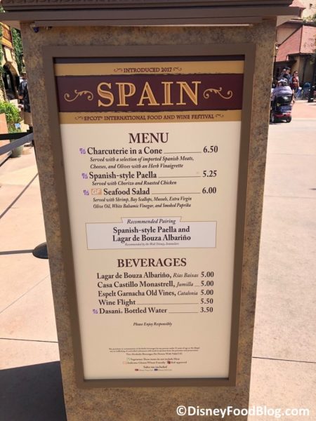 2018 Epcot Food and Wine Festival Spain Booth Menu