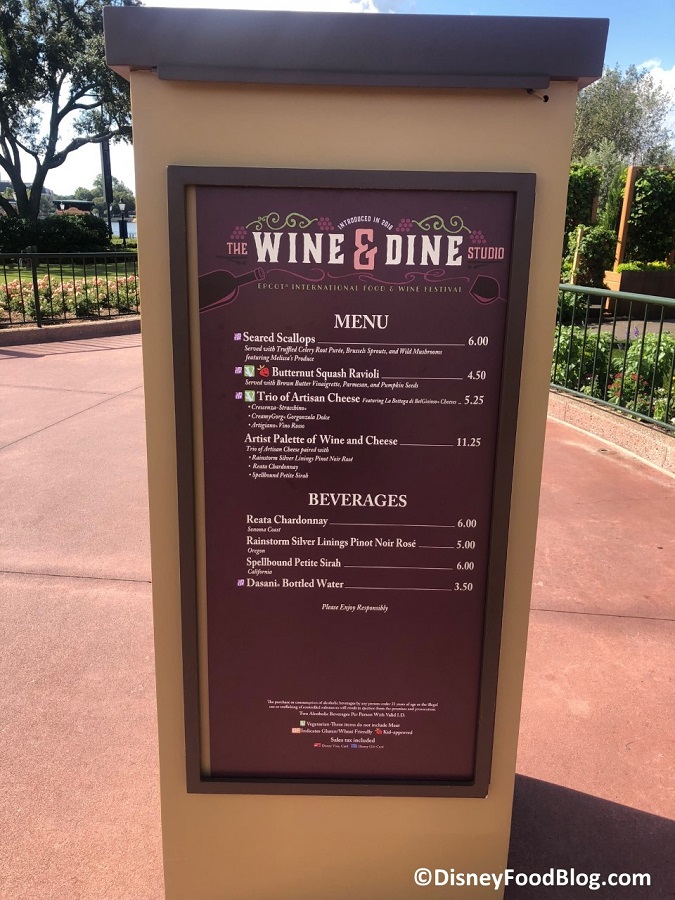 2018 Epcot Food and Wine Festival Wine and Dine Studio Booth Menu