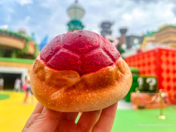 Yoshi LOVES fruit, so it’s only fitting that Yoshi’s Smoothies are featured on the menu, available in apple melon and mango. But even though Yoshi’s favorite food is fruit, a savory Red Shell Calzone and Green Shell Calzone are also up for grabs here.