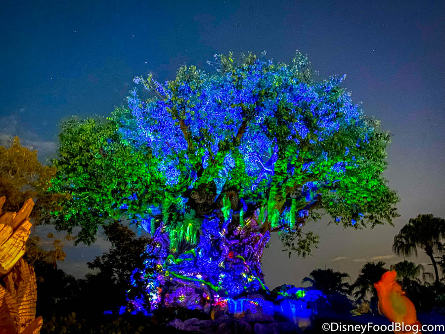 Guests admiring Animal Kingdom’s Tree of Life will see it come alive with bright hues rotating between red, blue, green, purple, and more!